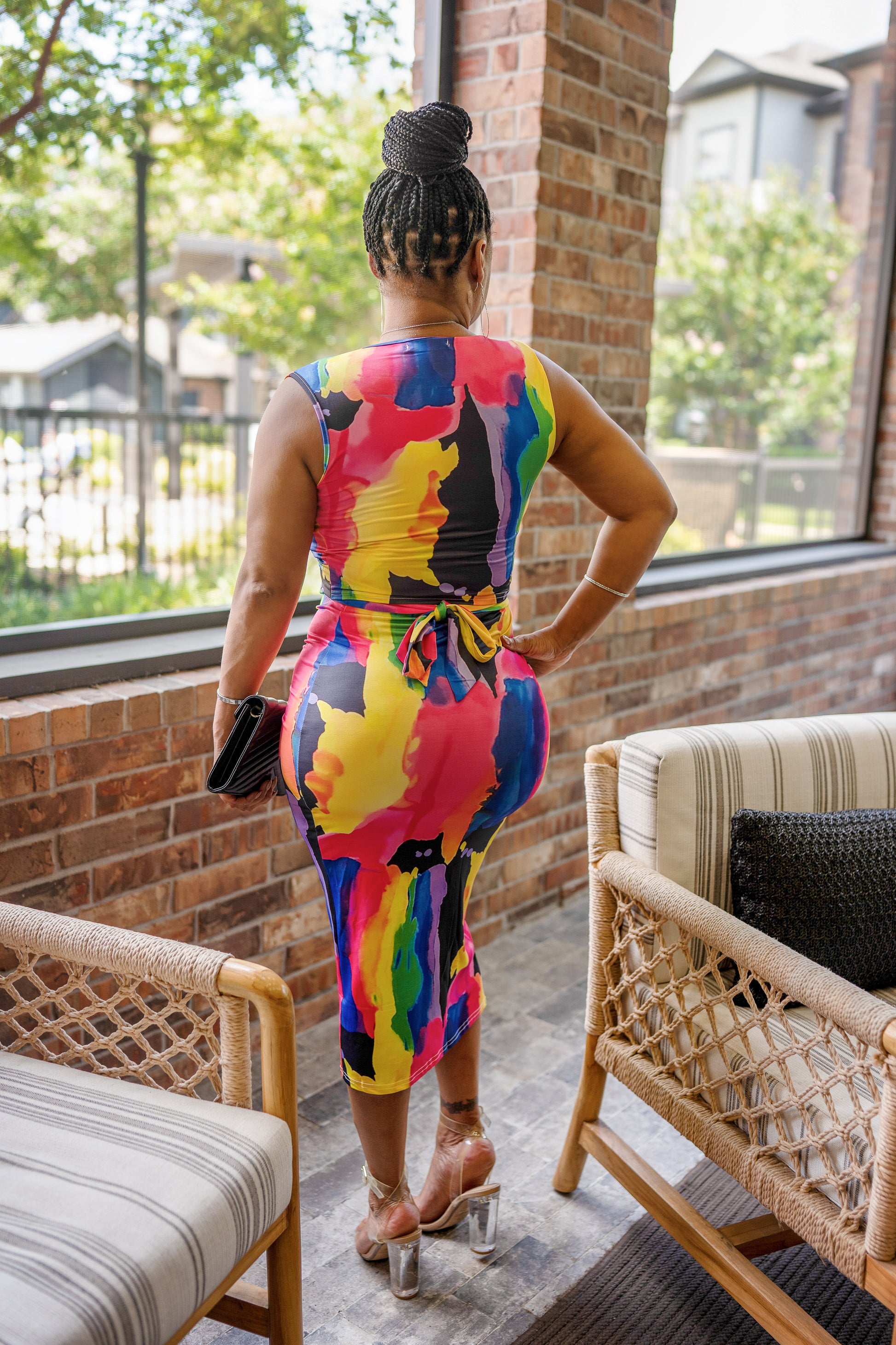 Elevate your wardrobe with the Camio Babe Set, a sophisticated two-piece ensemble featuring a vibrant, colorful skirt and matching top. Designed to blend bold hues with a refined yet playful look perfect for making a stylish statement.