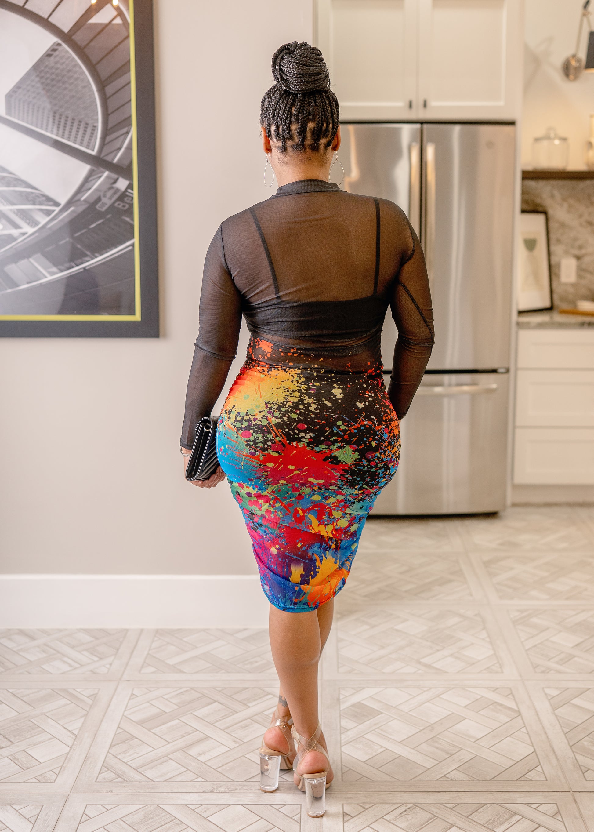 This exquisite three-piece set, complete with all pieces (bra, skirt, and sheer dress), offers a breathtaking blend of elegance and refinement. It embodies timeless sophistication and effortless grace.